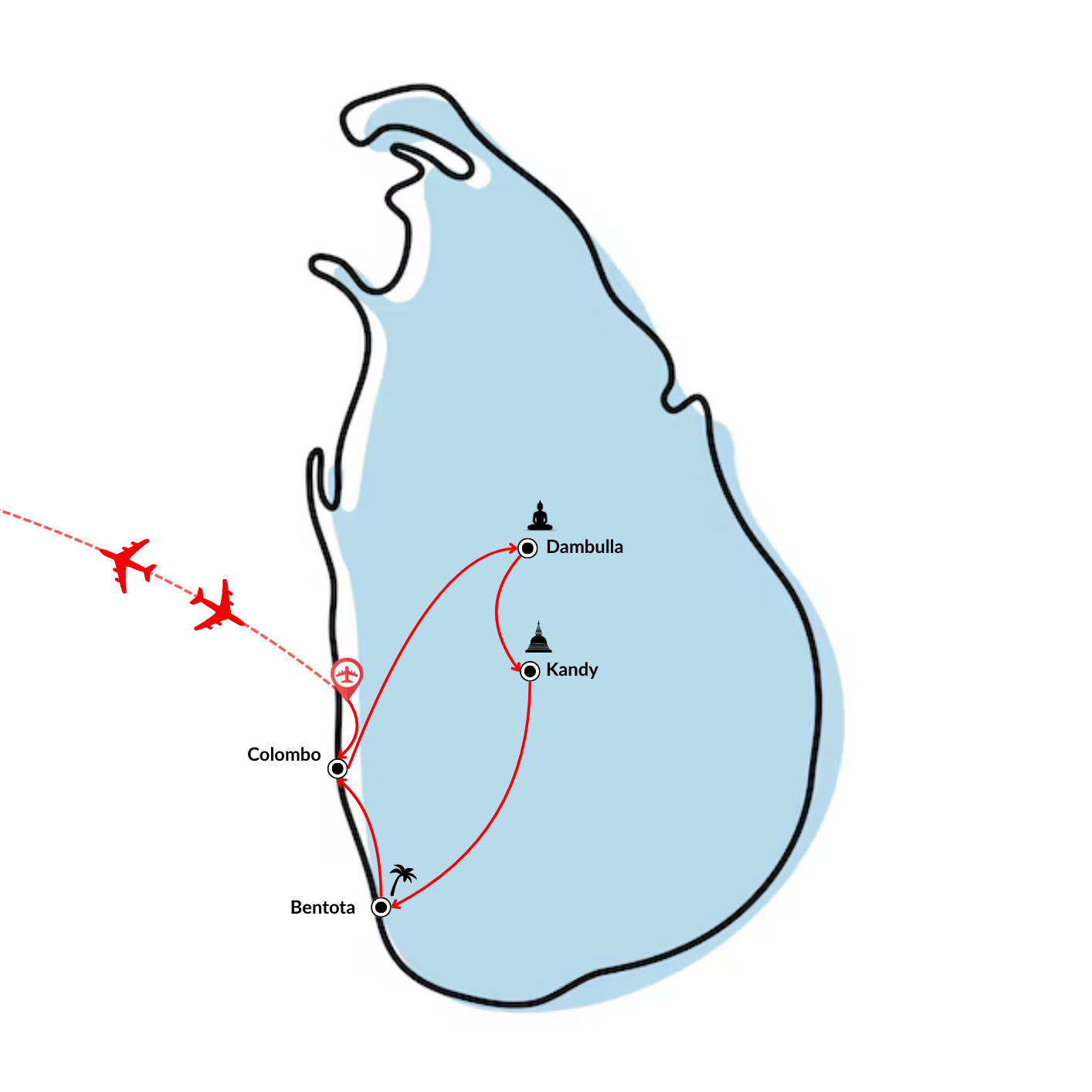 Arrival Pick Up From Colombo Airport. Tour Of Sri Lanka In A/C Car Or Van With Tourist Board Approved Driver-Guide. Fluent English Speaking Guide At All Attractions. Featured Hotels On Room And Breakfast Basis. Return Transfers To Colombo Airport.